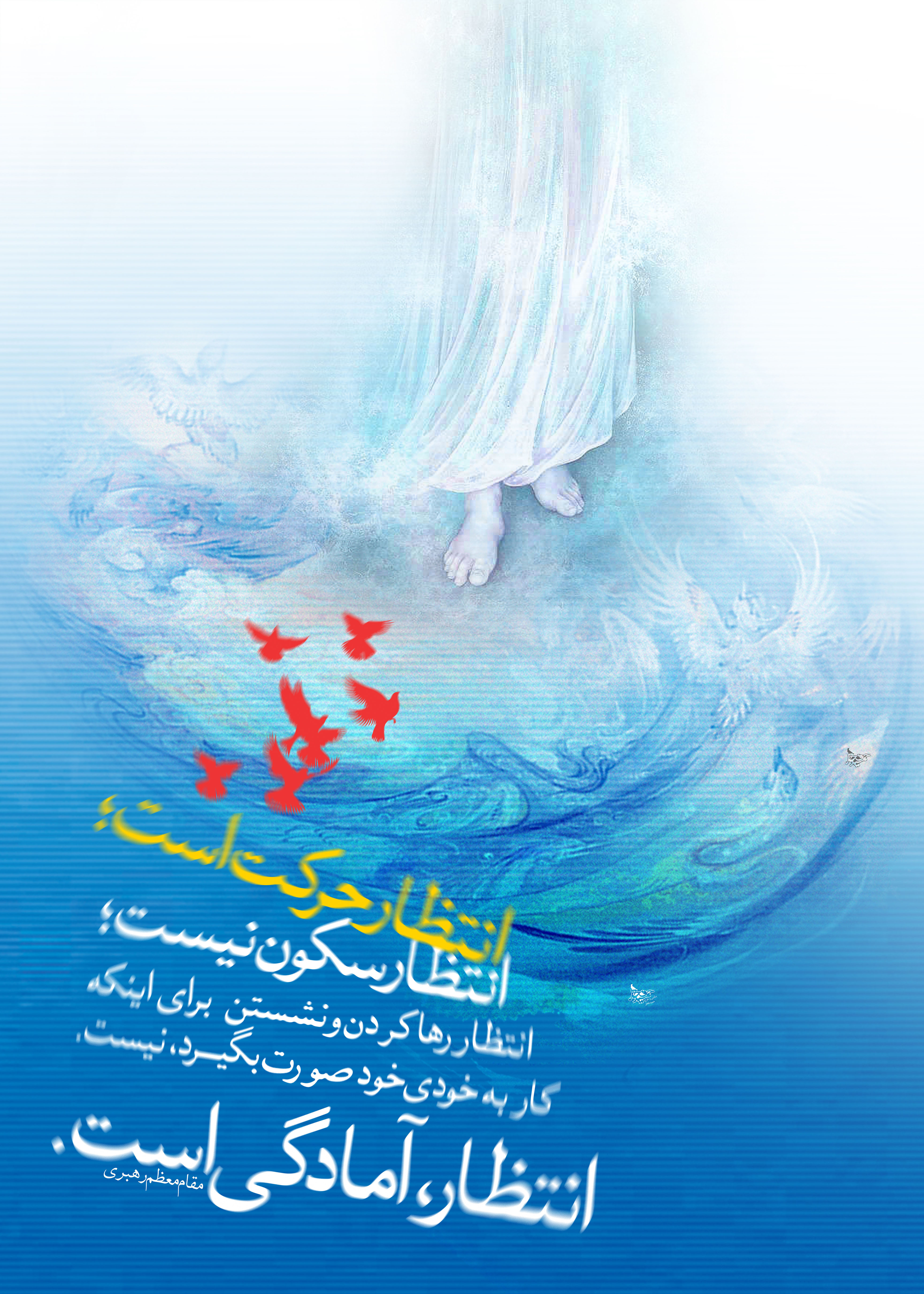 لازم میدانم که با کمال تواضع به رهبر و مقتدای خود عرض کنم که تهیه ی این مجموعه جز با عشق و ارادت به پیگیری فرمایش حضرتعالی نبوده و با وجود درخواست هایی جهت تملک امتیاز این مجموعه، با تمام وجود به دنبال آن بودم که توفیقی رفیق شود و فرصتی به دست آورم که این مجموعه پوستر را با افتخار فراوان به آقا و مرادم هدیه نمایم.
