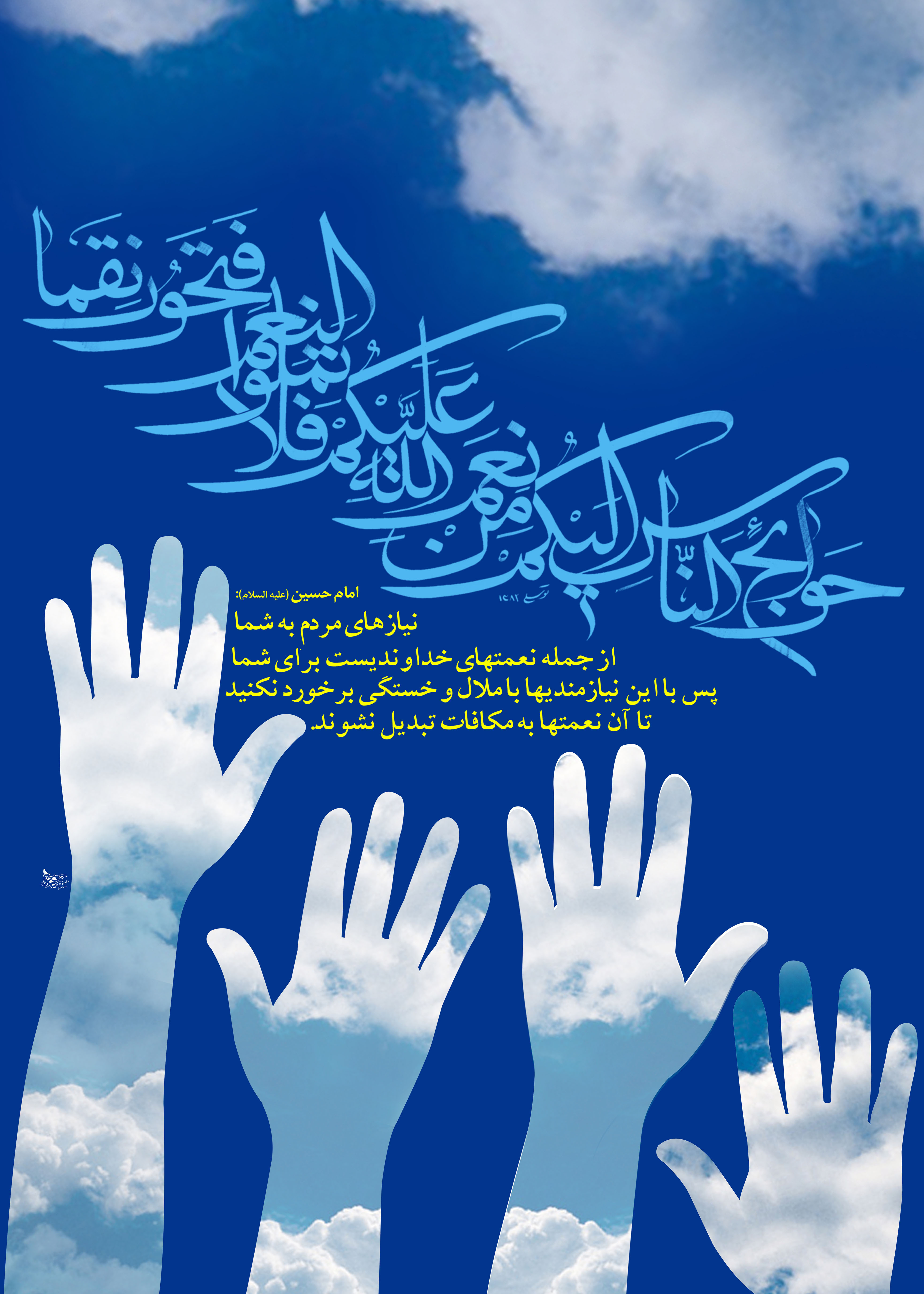 بعد از آماده سازی این مجموعه پوستر، چند موسسه و نهاد، خواستار خرید امتیاز این مجموعه بودند ولی سعادتی نصیب این حقیر شد که امتیاز این مجموعه را به صاحب اصلی اش، آن کسی که به اشاره ی انگشت نورانی اش این مجموعه طراحی شد، تقدیم کنم. شاید لحظه ای تبسم اش گره گشای دنیا و آخرت این حقیر گردد.