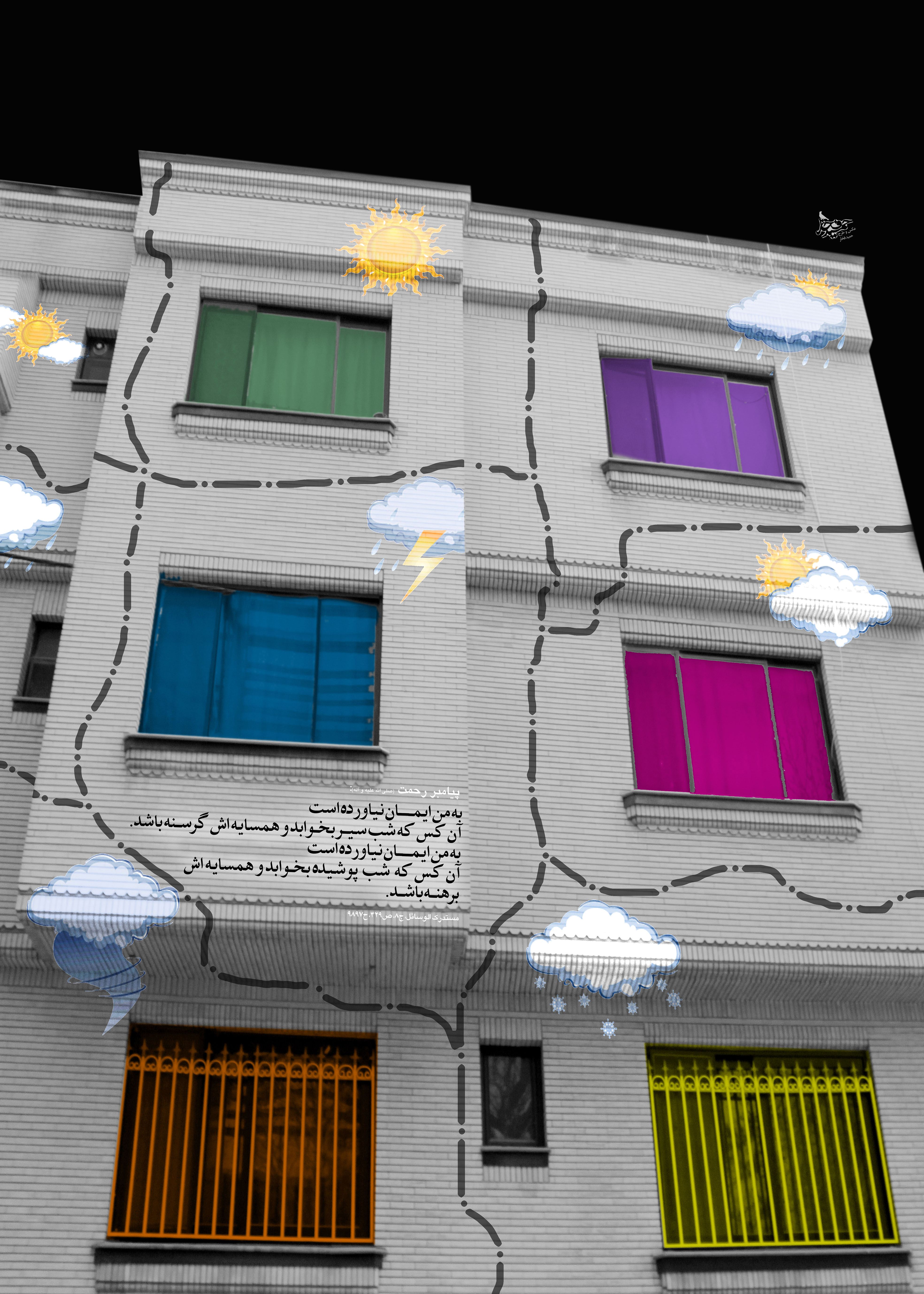 مجموعه ای که به پیوست خدمتتان عرضه می گردد چکیده ای از یک ماه کار محتوایی و اجرای گرافیکی پوسترهایی با موضوع "سبک زندگی" می باشد که توفیق شد در این مدت کوتاه این بسته را که شامل چهل پوستر می باشد، آماده کنم.