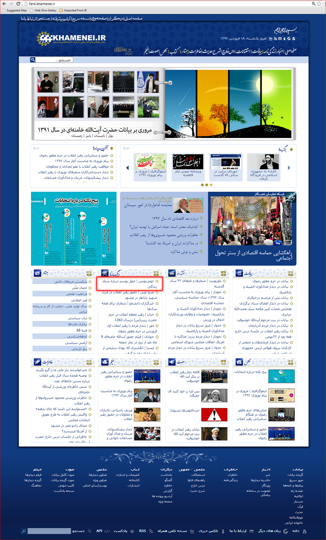 لذا به همه ی دوستان و ارادتمندان رهبر عزیزمان پیشنهاد می کنم جهت گسترش این مجموعه اعم از گذاشتن لینک و یا کپی مطلب در سایت و وبلاگ خود، در حد توان به نشر بیشتر آن اقدام نمایند.